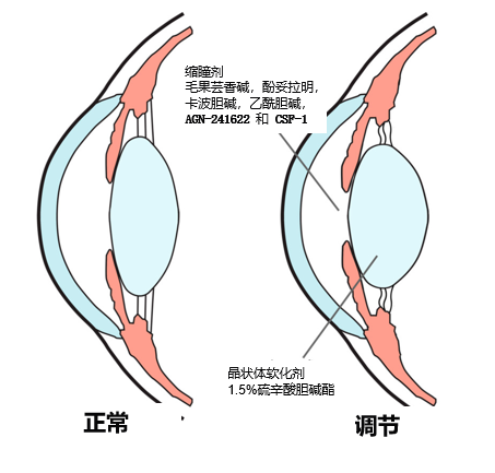 调节晶状体形状:Aceclidine还可以影响睫状肌的活动,从而改变晶状体的曲率,增强眼睛的调节能力。这种调节能力的改善对于患有老花眼的患者来说尤为重要,因为他们的晶状体已经失去了足够的弹性,难以有效聚焦近距离物体。