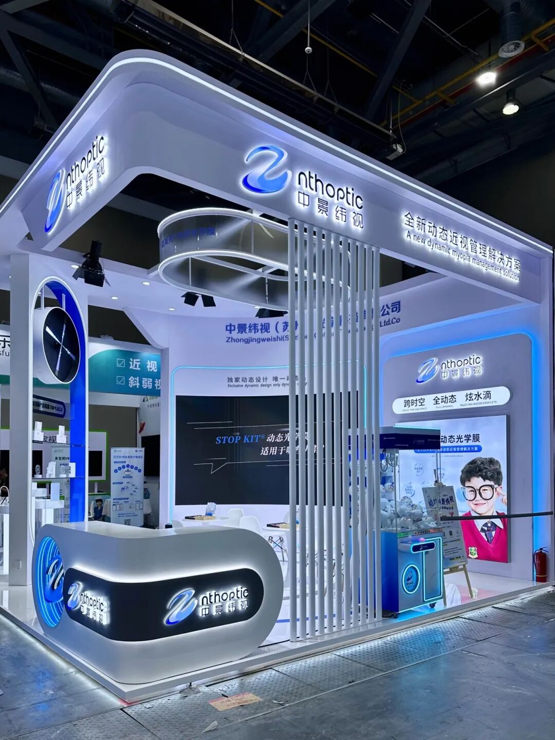 开展首日,中景纬视展台便迎来了大量眼科同仁的关注。本次展会,重点展示了基于“S.T.O.P KIT空间-时间-光学-相位”技术的创新近视管理解决方案。通过模拟自然光动态变化,精准缓解静态光学信号带来的神经适应性,为青少年近视防控提供了全新思路,吸引了众多眼科医生、视光师及业界专家驻足咨询。