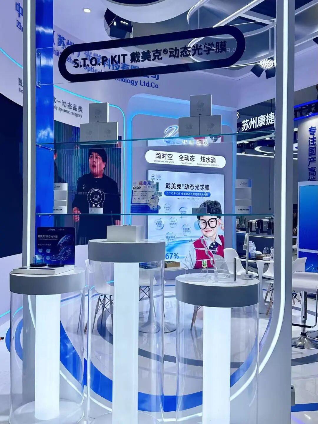 展会期间,"青白视角"健康自媒体对中景纬视展台进行了直播采访。公司副总兼CMO李哲闯博士亲临直播间,为线上观众深度解读了S.T.O.P KIT戴美克动态光学膜的产品创新技术与领先优势。