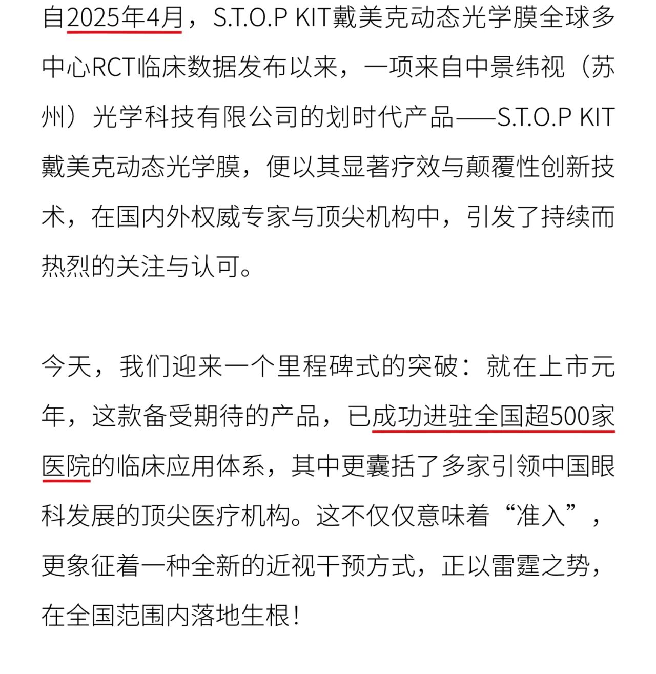 首发元年即覆盖500多家医院,中景纬视S.T.O.P KIT戴美克动态光学膜强势开局!